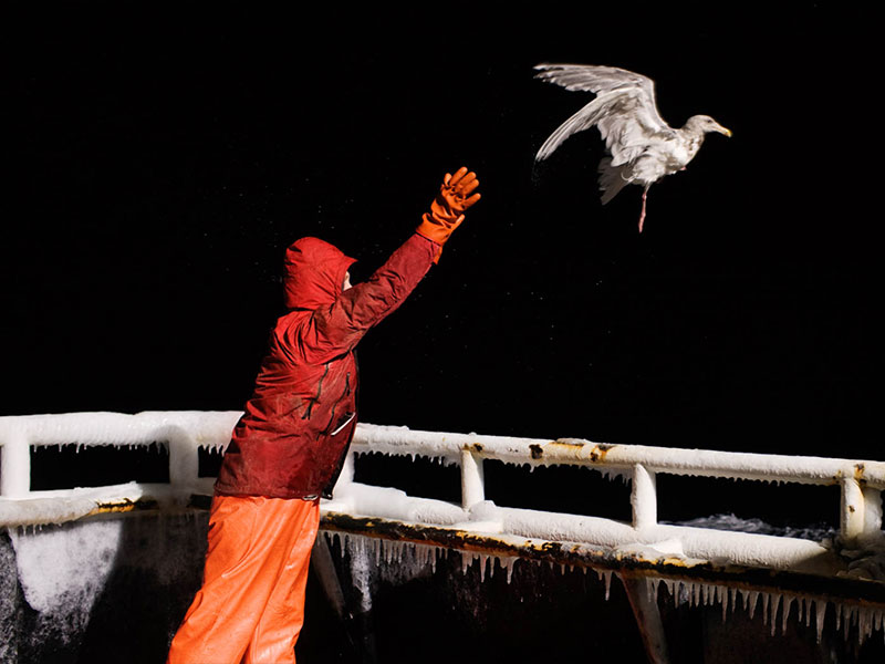 Du jour au lendemain, Lili quitte tout. Quelque chose qui n’en vaut pas la peine, l’ennui, la résignation peut-être. Elle part. Elle part pêcher au bout du monde, en Alaska, The Last frontier, pour se frotter aux éléments, aux poissons géants, à la douleur et à la peur, aux préjugés aussi. Héroïne tirée du formidable roman autofictionnel de Catherine Poulain, Le Grand Marin, Lili est le point de départ pour évoquer les combats de ces femmes pêcheuses, et des autres, qui se battent pour rester à bord et franchir les frontières. Dépasser la ligne imaginaire, aller toujours au-delà de ses peurs, de sa douleur, de ses hésitations, de ce qu’on attend des femmes. Lucie Rébéré, avec ses quatre comédiennes en bottes et ciré à l’énergie débordante sur la musique des Pogues, de Tina Turner, de la country, expérimente la fureur de vivre de cette Lili, transformant le plateau du théâtre en pont de bateau et convoquant par l’expérience et le jeu, la puissance d’une femme libre, prête à tout pour exister par elle-même.